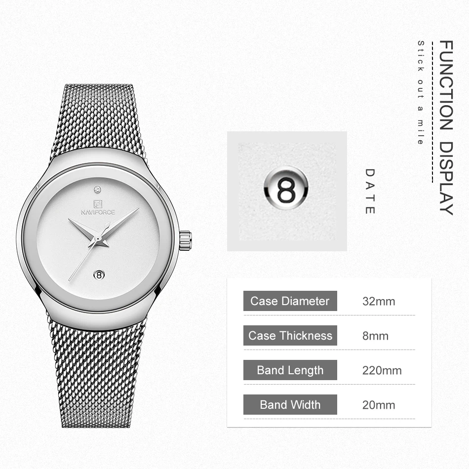 Women Watches NAVIFORCE Top Luxury Brand Lady Fashion Casual Simple Steel Mesh Strap Wristwatch Gift for Girls
