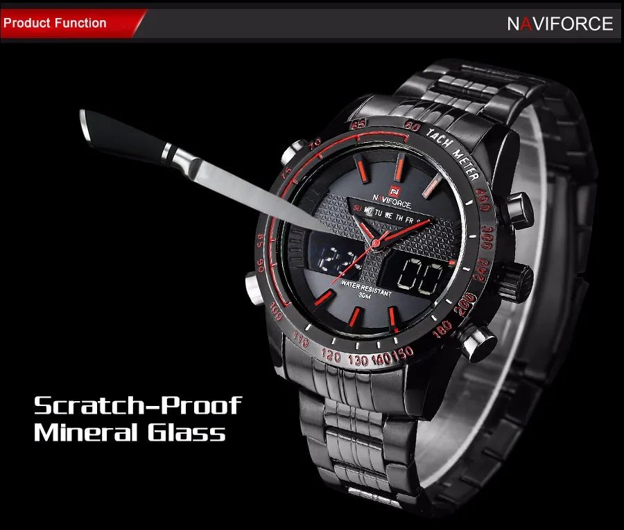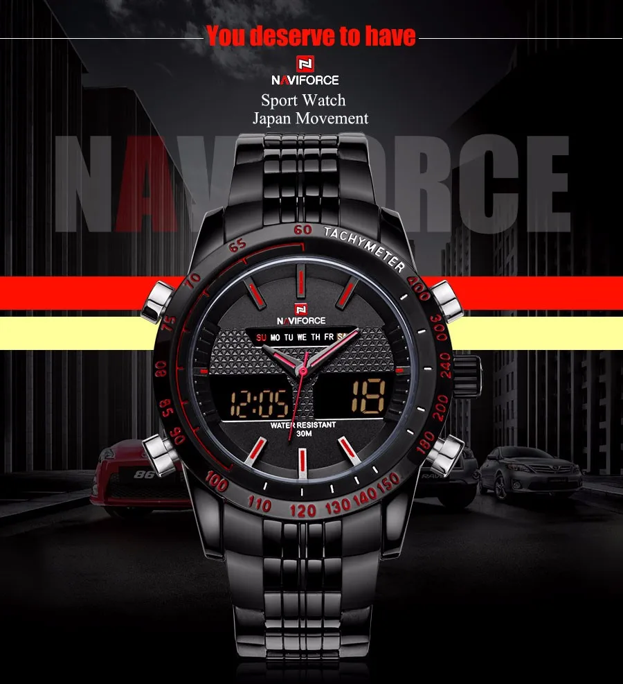NAVIFORCE Top Brand Mens Sport Watch Men Stainless Steel Analog Digital LED Watches jam tanga Clock Relogio Masculino