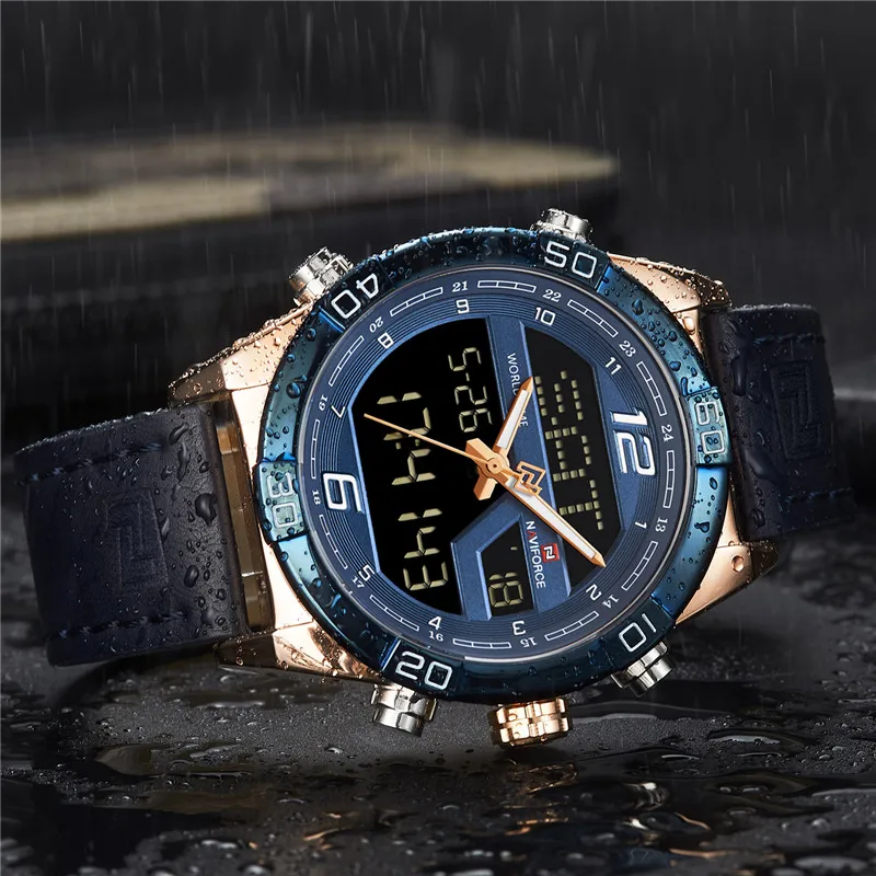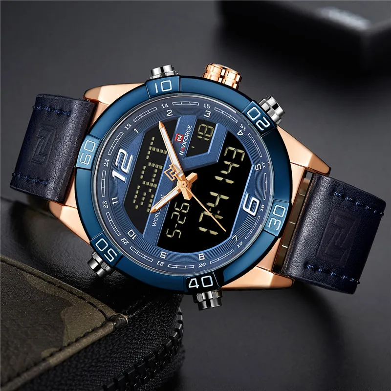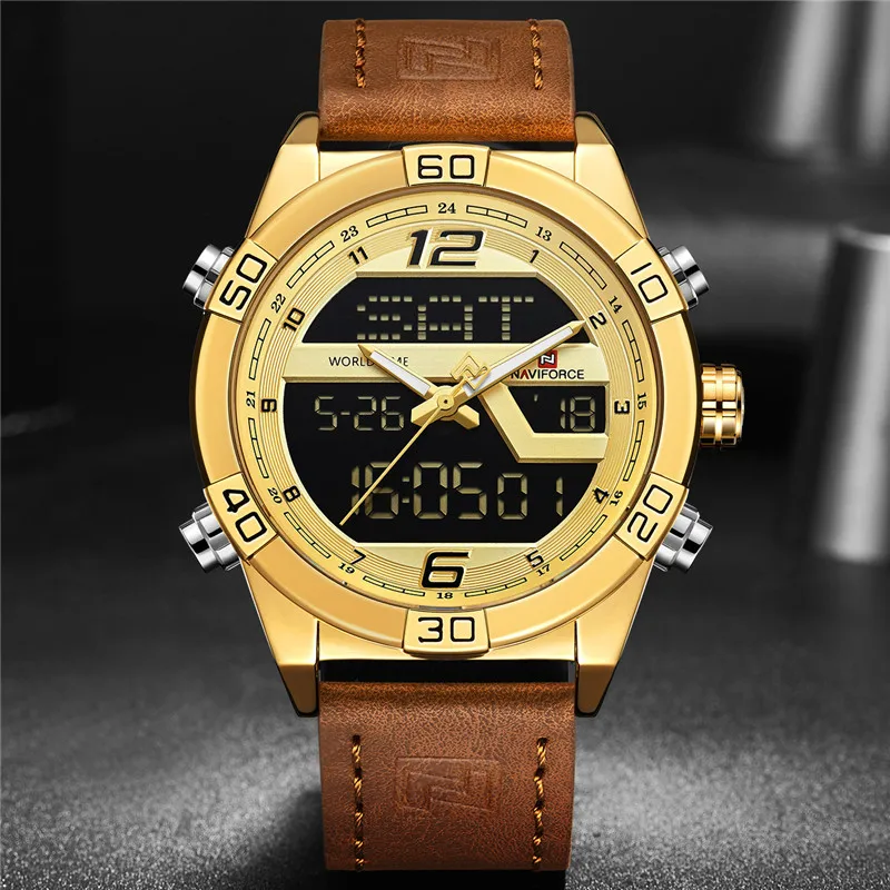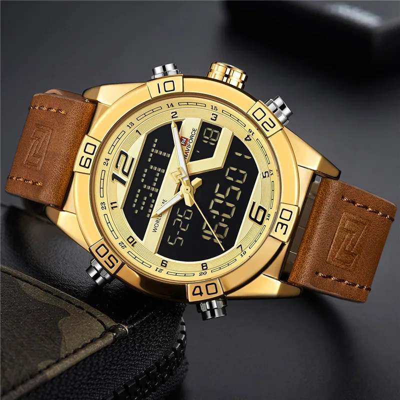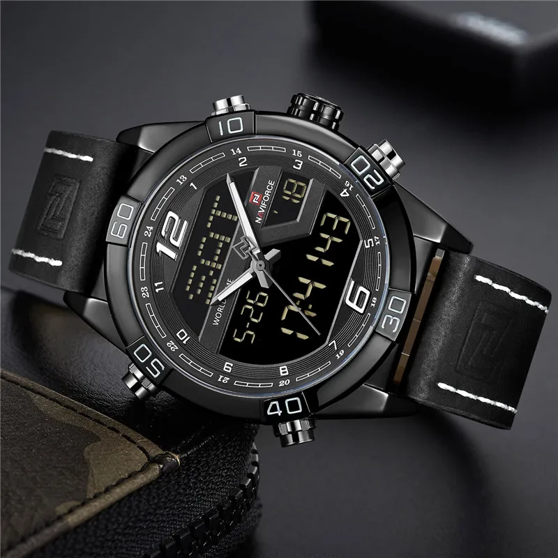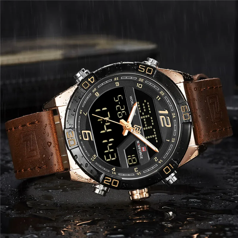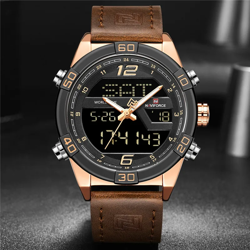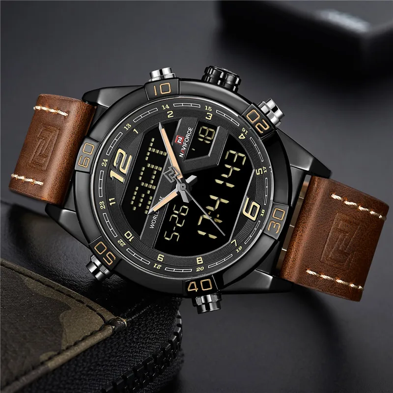 Would you like to improve your look with the elegant watches available at hallaSOUQ.qa? Buy NAVIFORCE NF 9128 Men’s Fashion Sports Watch Waterproof Analog and Digital Leather Strap Quartz-BLACK BROWN in Qatar and Doha to get it delivered within 24 Hours. We offer cash on delivery in Qatar for all Watches.