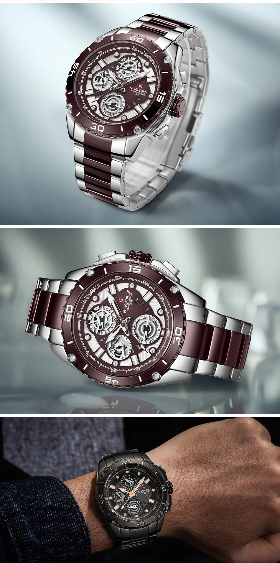 Would you like to improve your look with the elegant watches available at hallaSOUQ.qa? Buy NAVIFORCE NF 9179 Men’s Luxury Brand Stainless Steel Waterproof Wrist Watch – Silver Coffee in Qatar and Doha to get it delivered within 24 Hours. We offer cash on delivery in Qatar for all Watches.