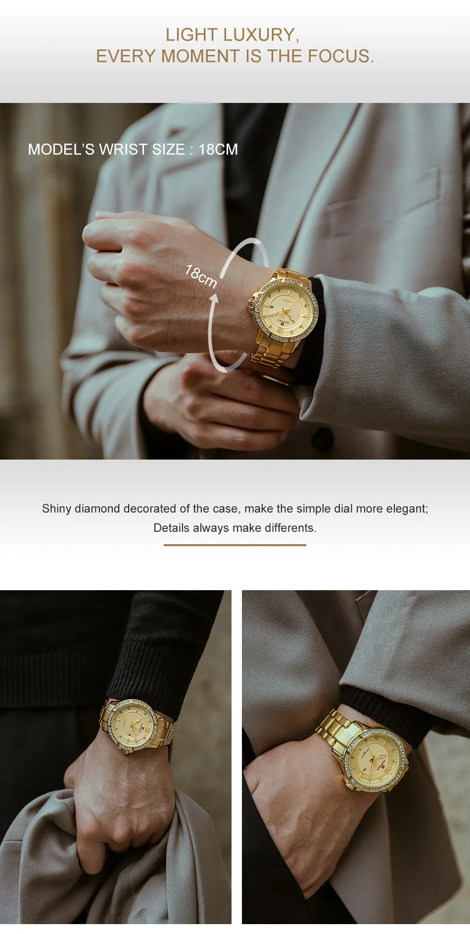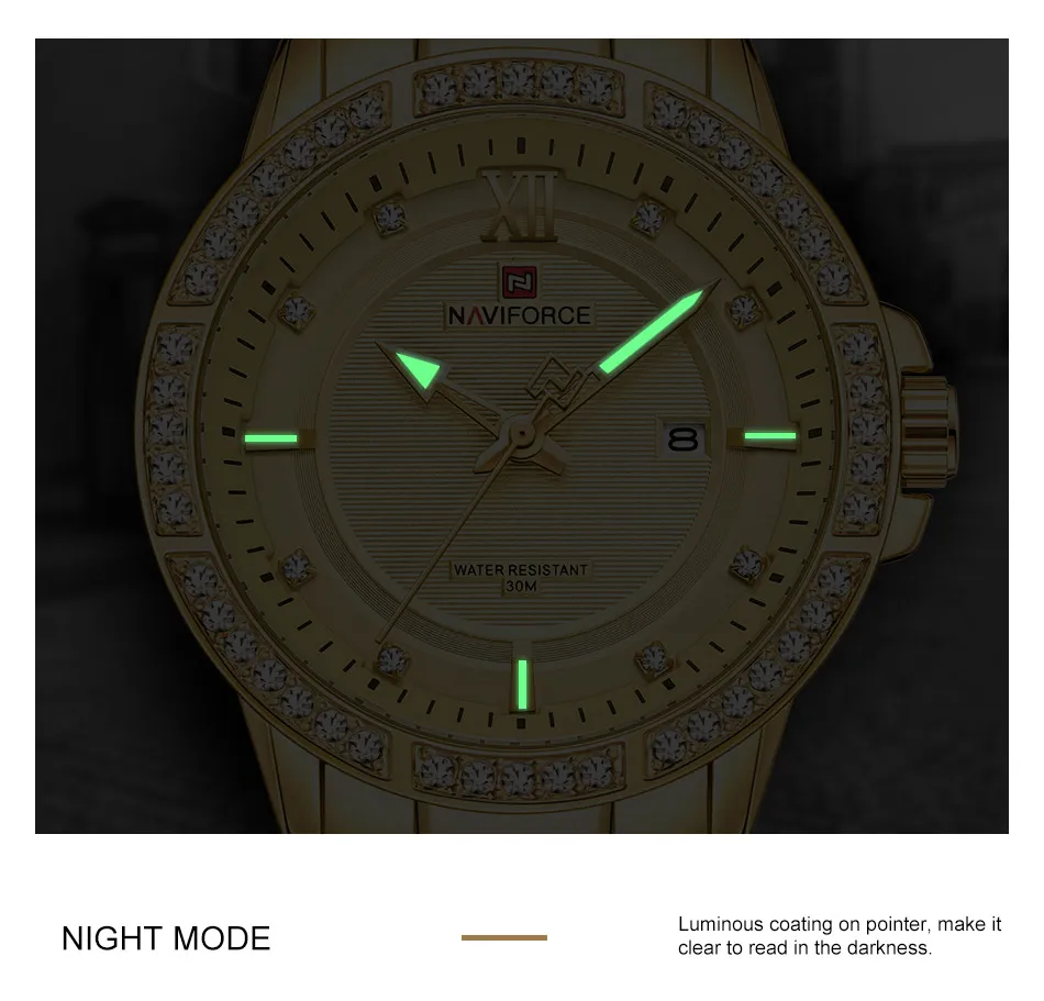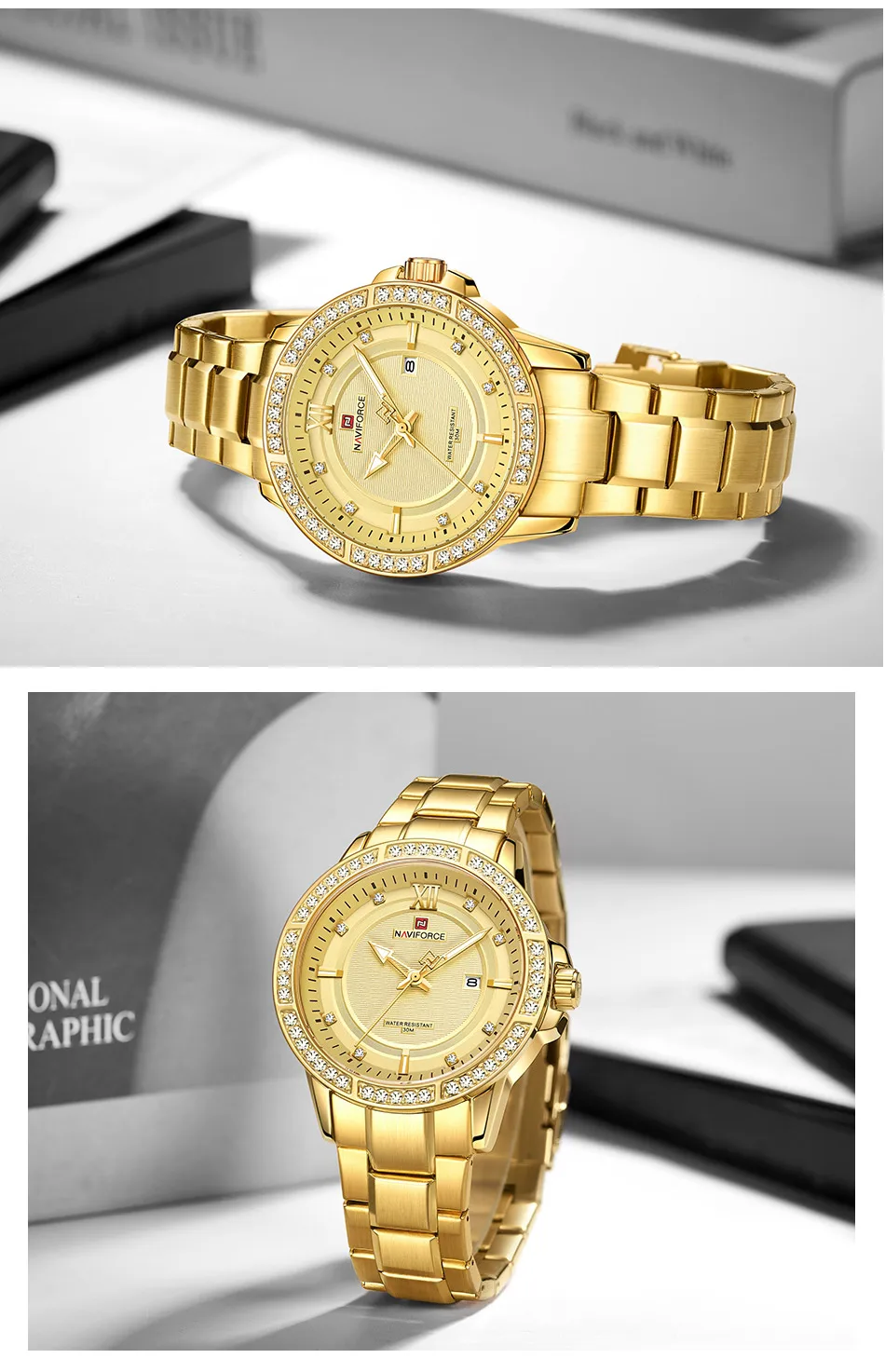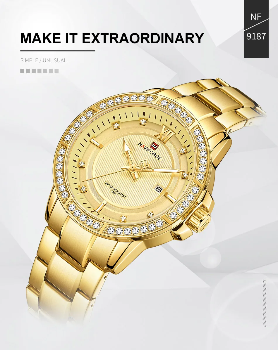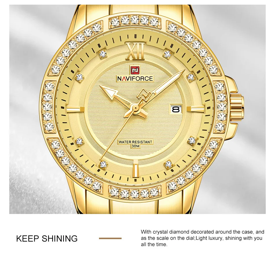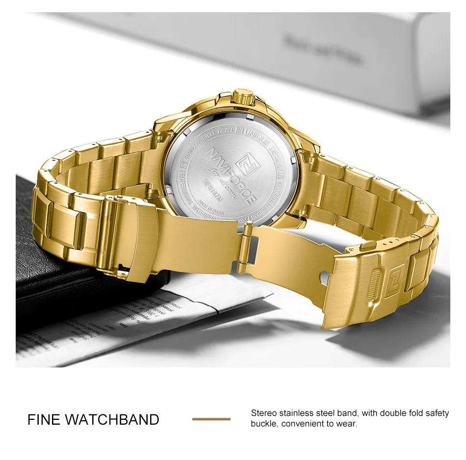 NAVIFORCE Men Watch Top Brand Luxury Fashion Gold Business Watches Mens Casual Waterproof Wristwatch with Date and Rhinestone