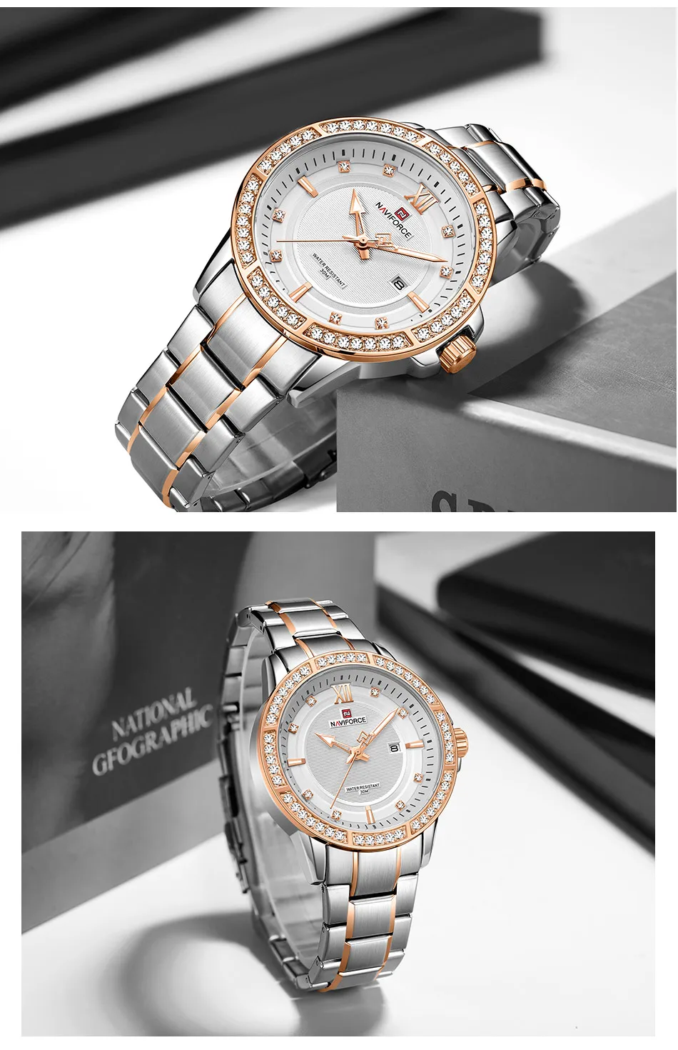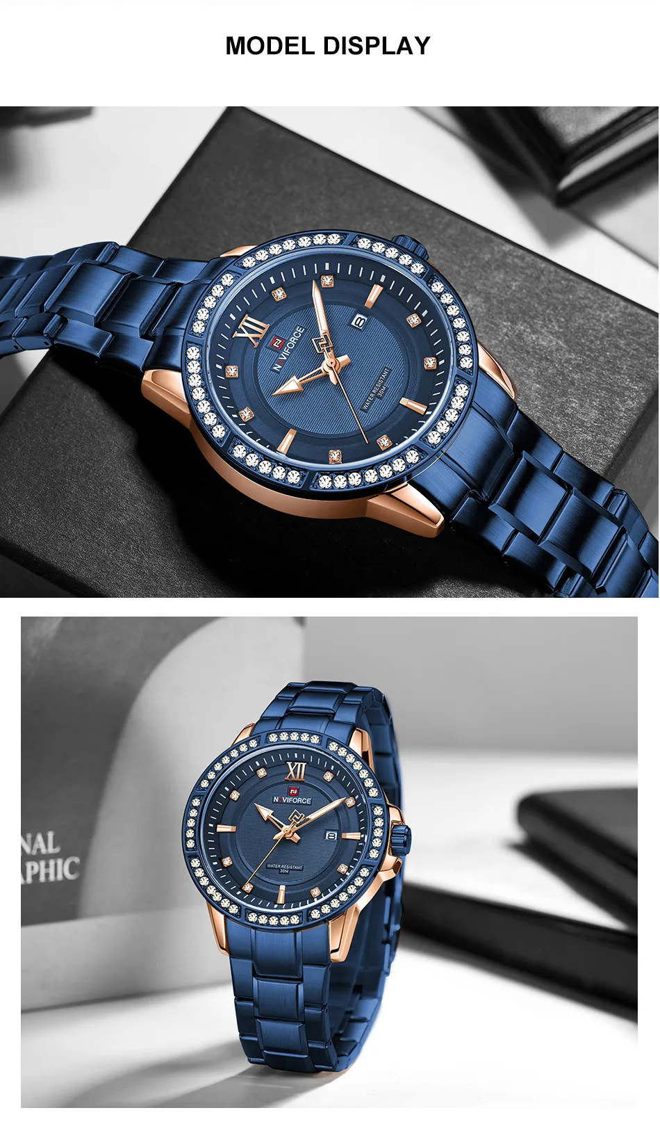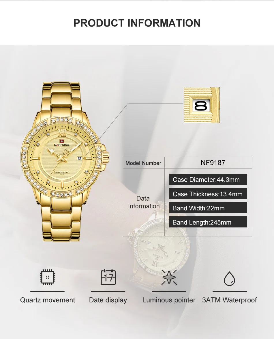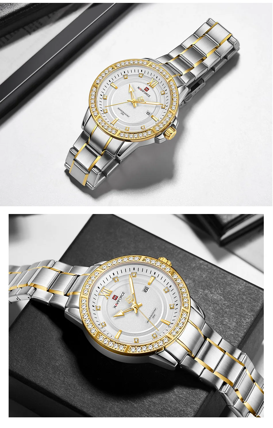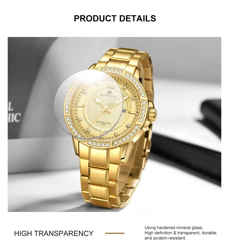 NAVIFORCE Men Watch Top Brand Luxury Fashion Gold Business Watches Mens Casual Waterproof Wristwatch with Date and Rhinestone